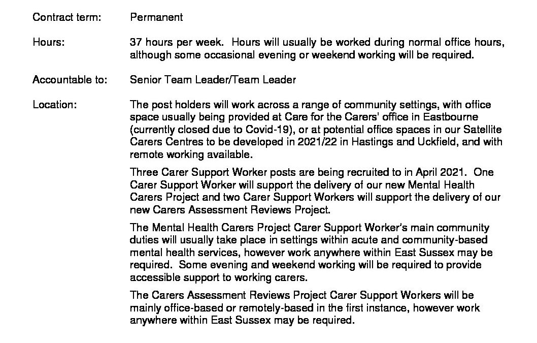 Carer Support Worker JD – May 2021
