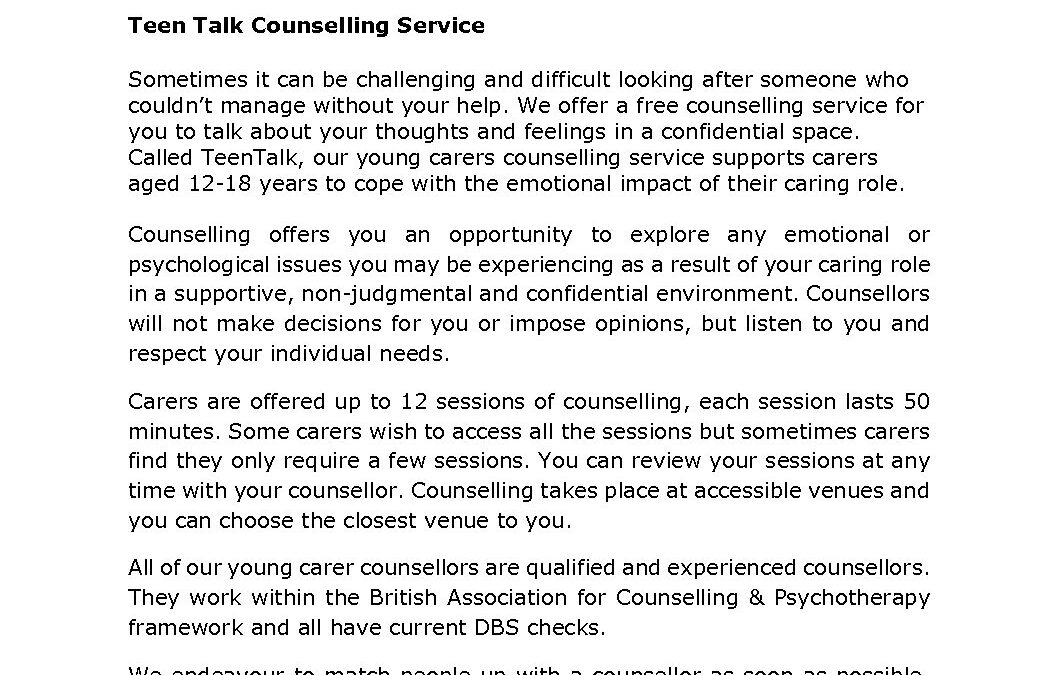 FACT SHEET 9 Teen Talk Counselling service