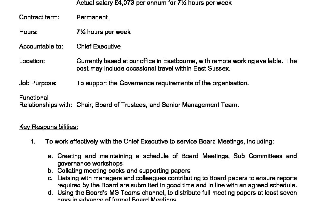 Governance Administrator Job Description – Sept 2021
